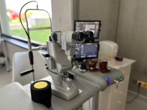 - Visual acuity (visus) – reading a distance chart with and without glasses using a special optotype
